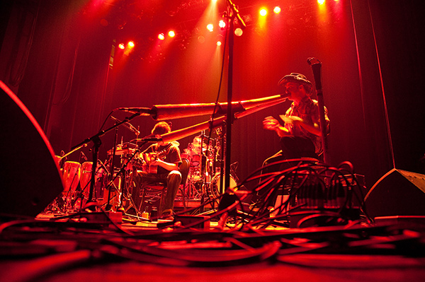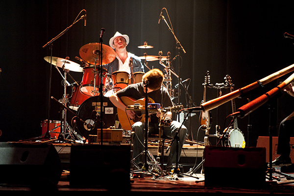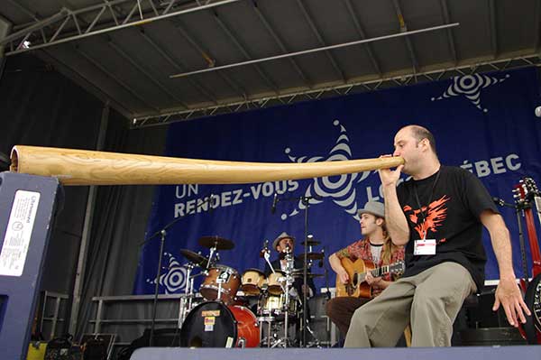 A first album - Kinda Roots - was released at the end of 2009, demonstrating the endless possibilities of didgeridoo music following different musical universes. With this first proposal in hands, the band ended up getting to coveted Entrées en scène Loto-Québec 2010-2011 bursary program. Their remarked venue at the RIDEAU showcase in 2010 allowed them to get a tour of over 40 shows all around the province of Quebec. They were also noticed at the Toronto Global Groove festival and they did a mini tour of B-C, which brought them to the Salmon Arm Roots & Blues Festival and a few other outside venues. After offering over a hundred shows between 2009 and 2011, including festivals, small inside venues, corporate events and mainstream cultural theaters, the band had to beef up its repertoire, by improving melodic lines to be better suited to sitting audiences.